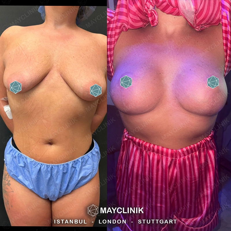 Die Bruststraffung wird unter Vollnarkose durchgeführt und dauert in der Regel 2 bis 3 Stunden. Vor der Operation werden die Bruststruktur, Hautelastizität und Erwartungen der Patientin bewertet und ein individueller chirurgischer Plan erstellt. Die angewandte Technik variiert je nach Ausmaß der Erschlaffung und Hautüberschuss.
